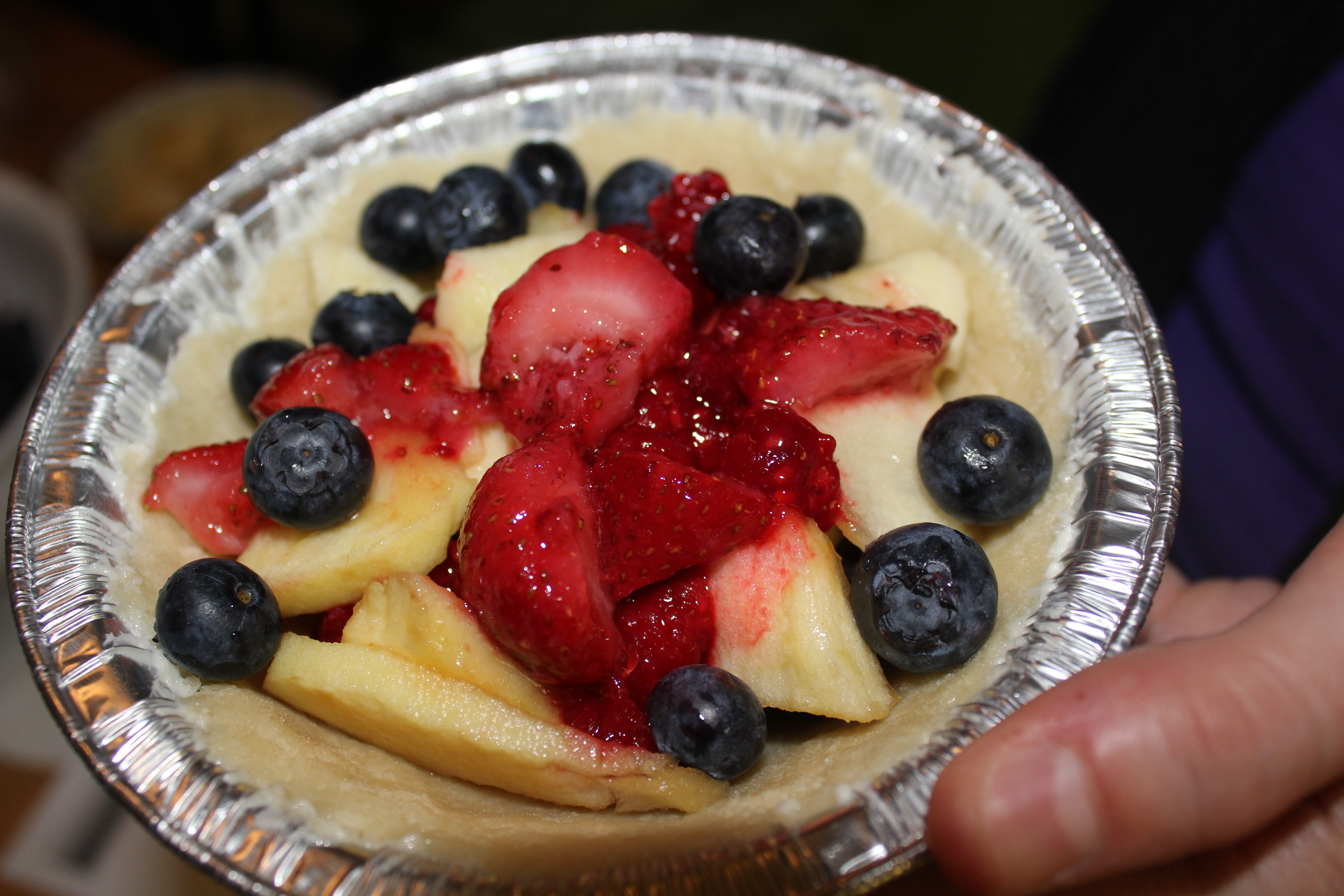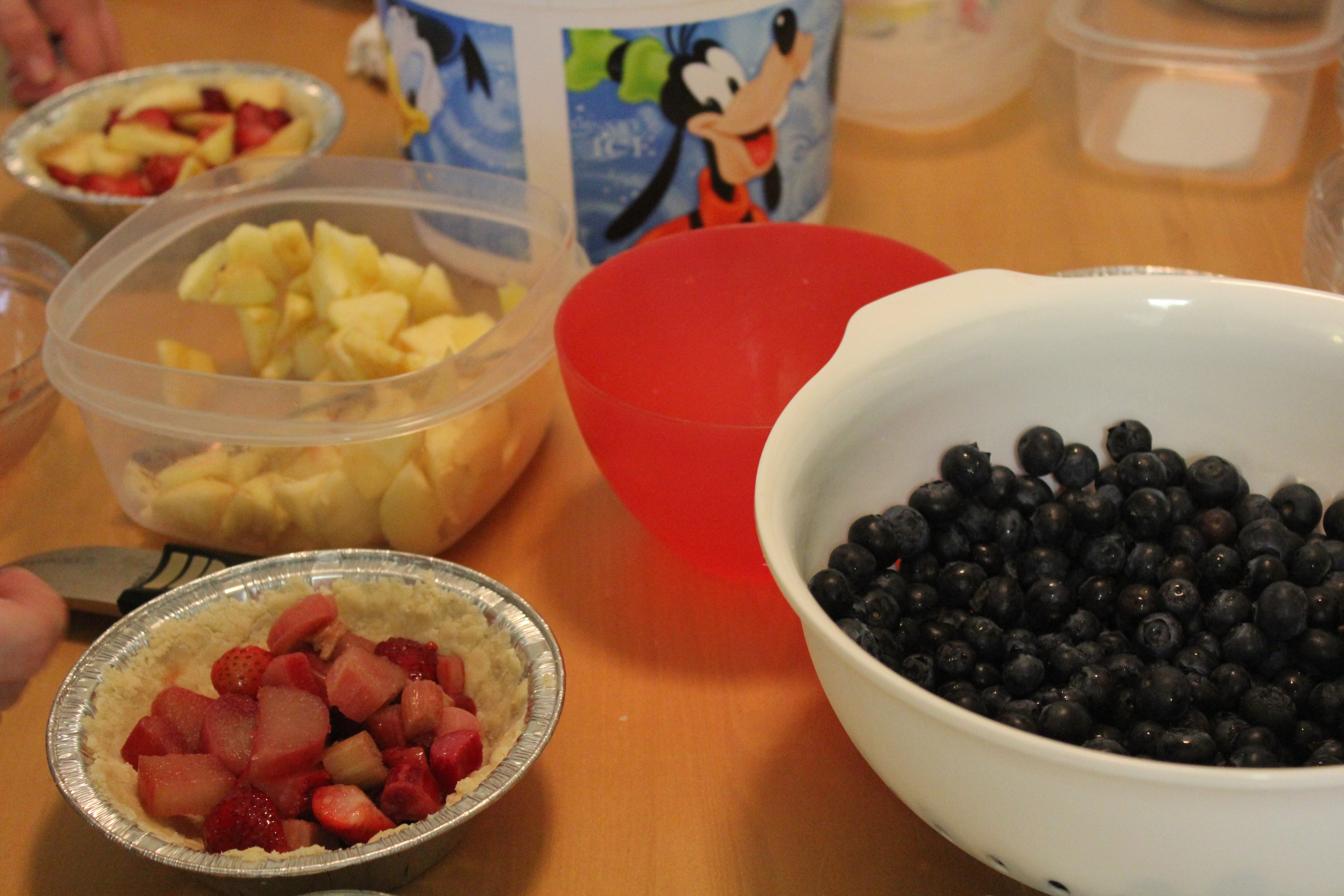 To accommodate the diverse taste buds of our group, we used apples, strawberries, raspberries, blueberries, AND rhubarb! Hooray!