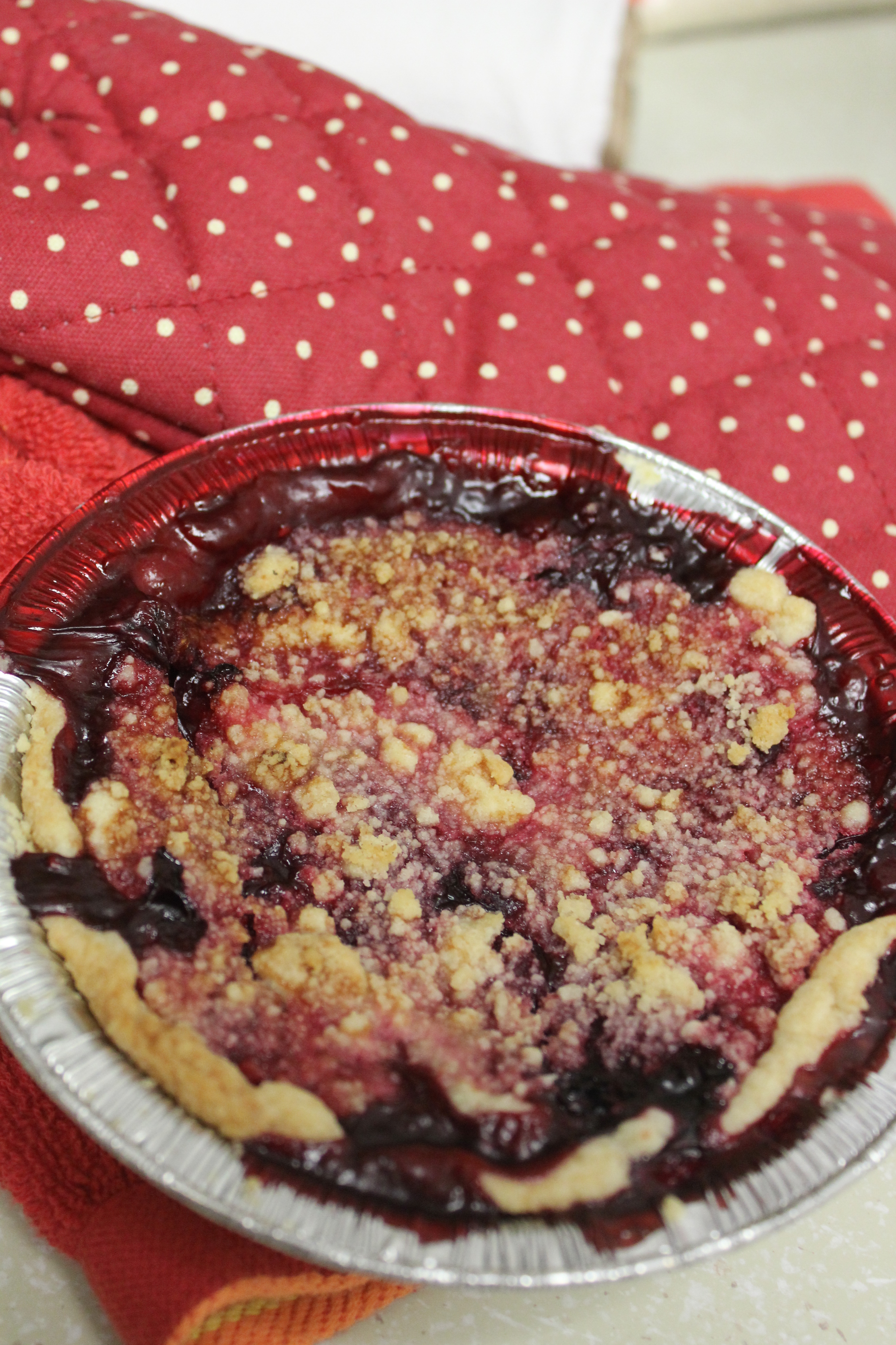 The recipe I used was one called “Little Fruit Crumb Pies.” The funniest part was that the recipe talks a lot about how this is a “recipe for the kids” and includes quotes like, “have the children gently press the remaining pastry crumbs into the fruit.” So I got to pretend I had a bunch of children making pies with me.