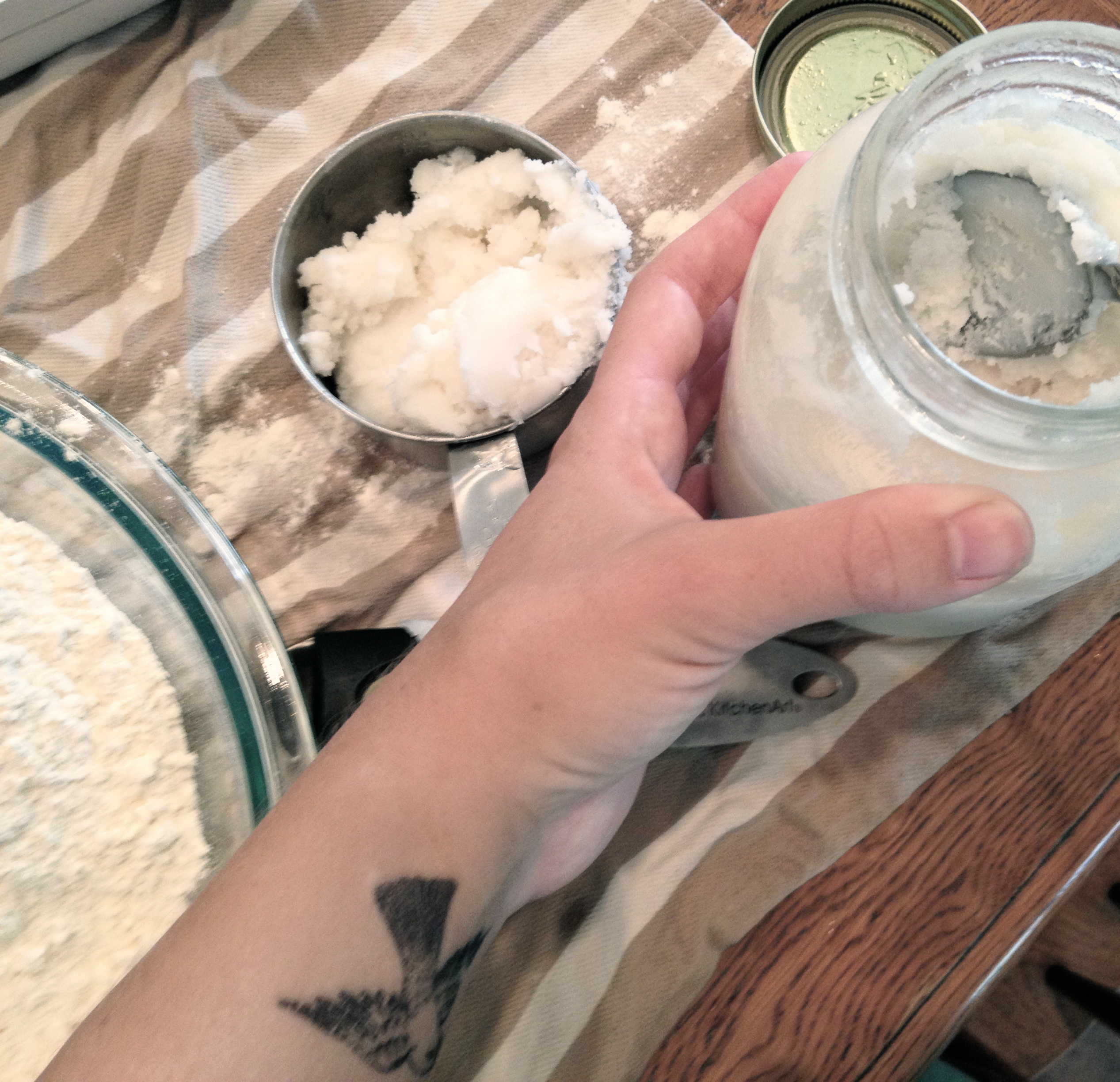 Not to be gross, but the smell of the stuff when I opened the lid of the jar was a bit disconcerting. Like, yeah. It smelled strongly like an animal. Which I suppose makes sense. I made everyone else smell it, and I couldn’t get a consensus on whether or not to use based on smell alone. But, lest this bear die in vain, I decided I needed to carry on. I’m glad I did. Not only did the smell and taste disappear entirely once the pie was baked, but the crust was incredibly soft and flaky. Quite different from the results of using butter, but in a very pleasant way.