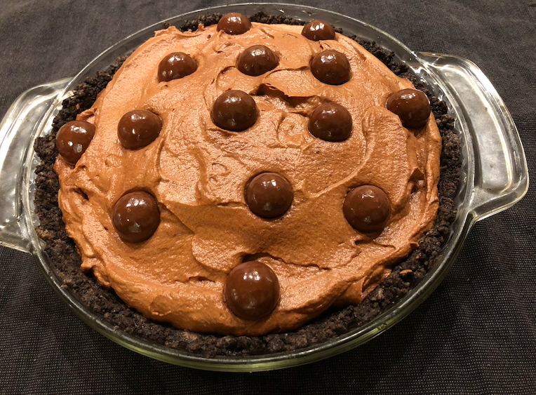Our church’s school held their yearly Silent Auction over Facebook; typically it would have taken place as part of the annual Spring carnival, but a big in-person carnival still wasn’t really a thing at that time. I volunteered to make a pie to auction off (in part moved by the awesome pie auction I was party to earlier in the year). I spend some time mulling over which of the remaining pies in my book would appeal most deeply to my audience, and be fairly transportable/sturdy at the same time. I decided to target the chocolate lovers, and landed on Chocolate Malted Pie.