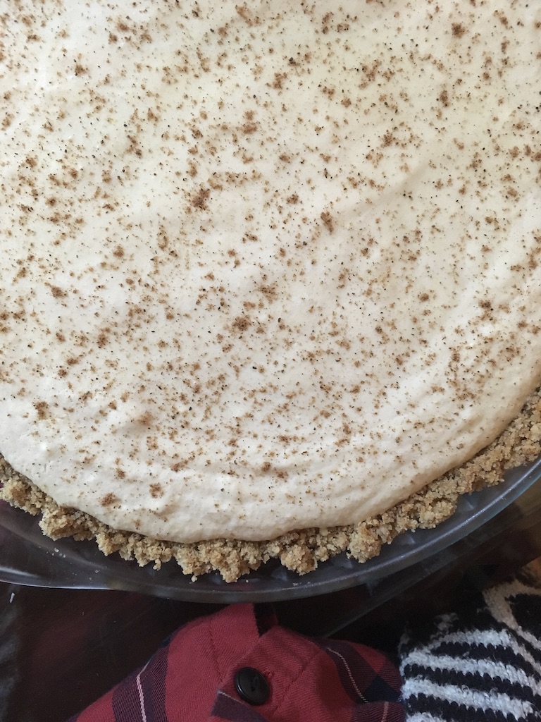 First step: as you might expect for such a chocolatey pie, an “Oreo” crust is laid down, baked and cooled.