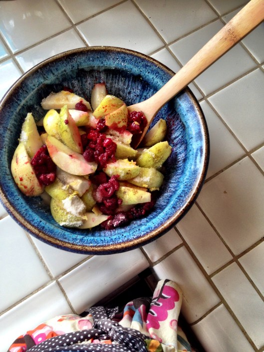 lattice crust, pear, raspberry
