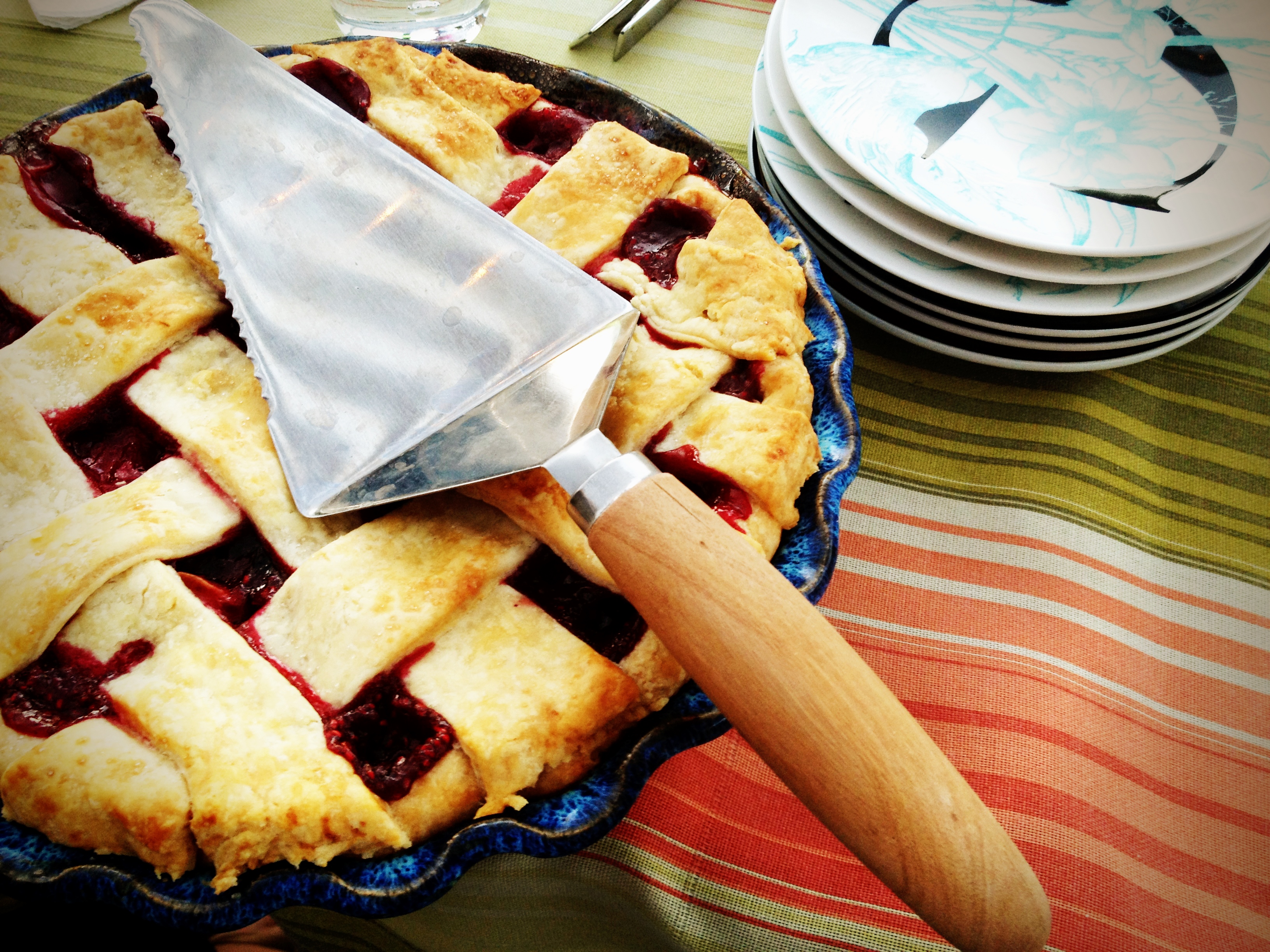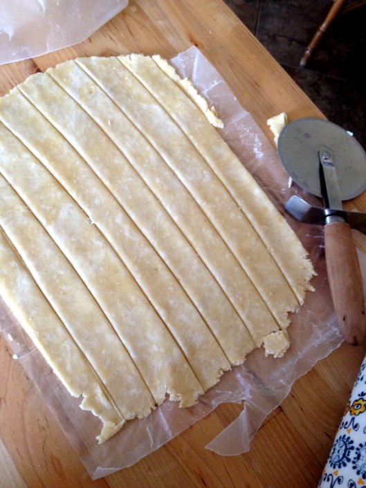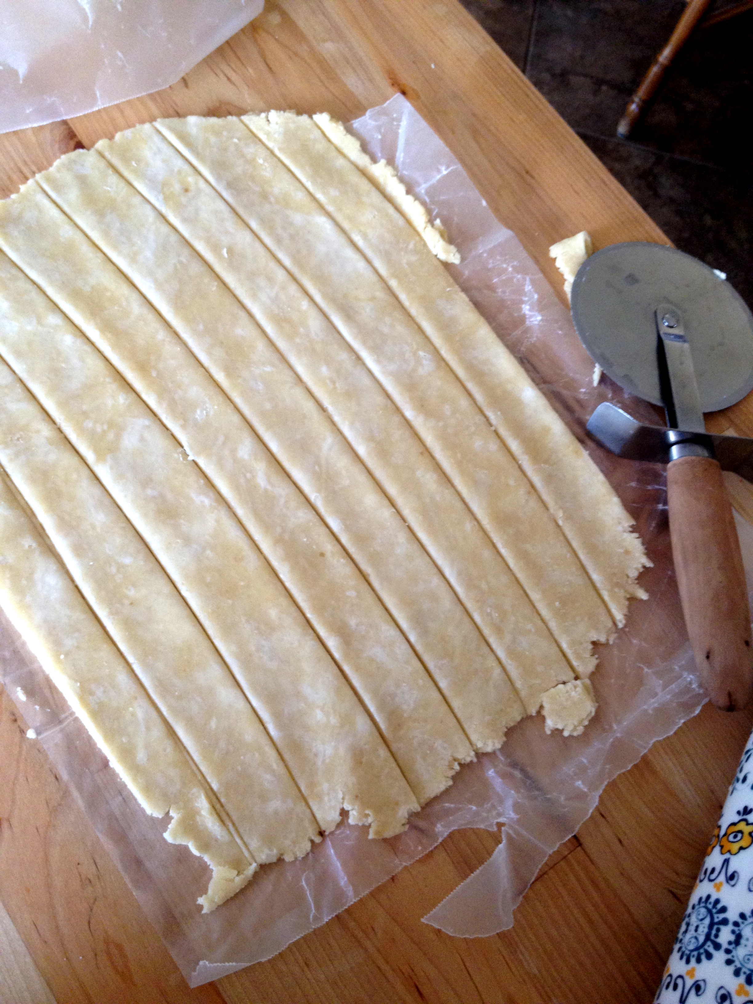Another lattice trick: use a pizza cutter to cut strips of crust! (I made eight strips and followed the clever diagram given in Pie, which makes the actual assembly of the lattice a cinch.)