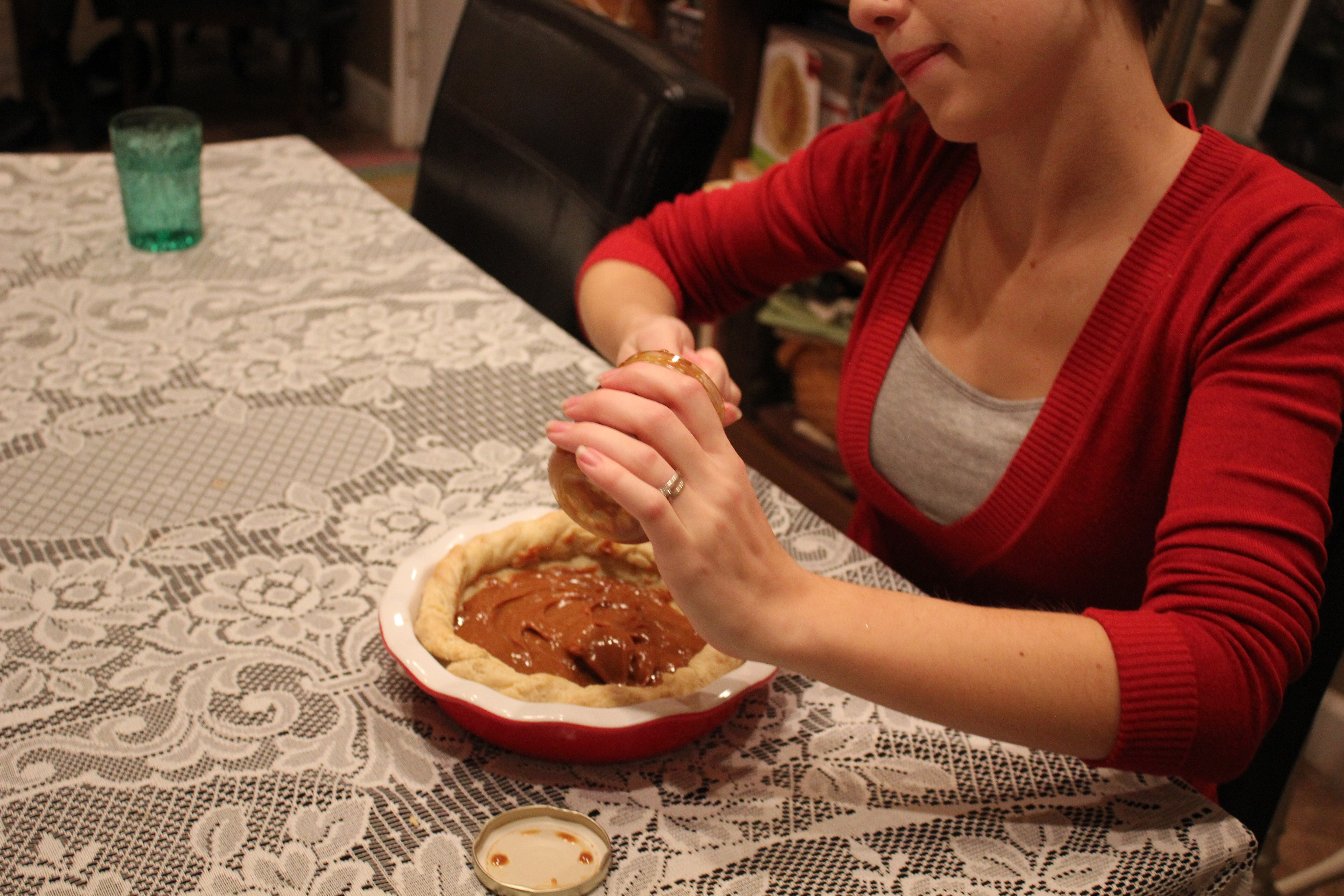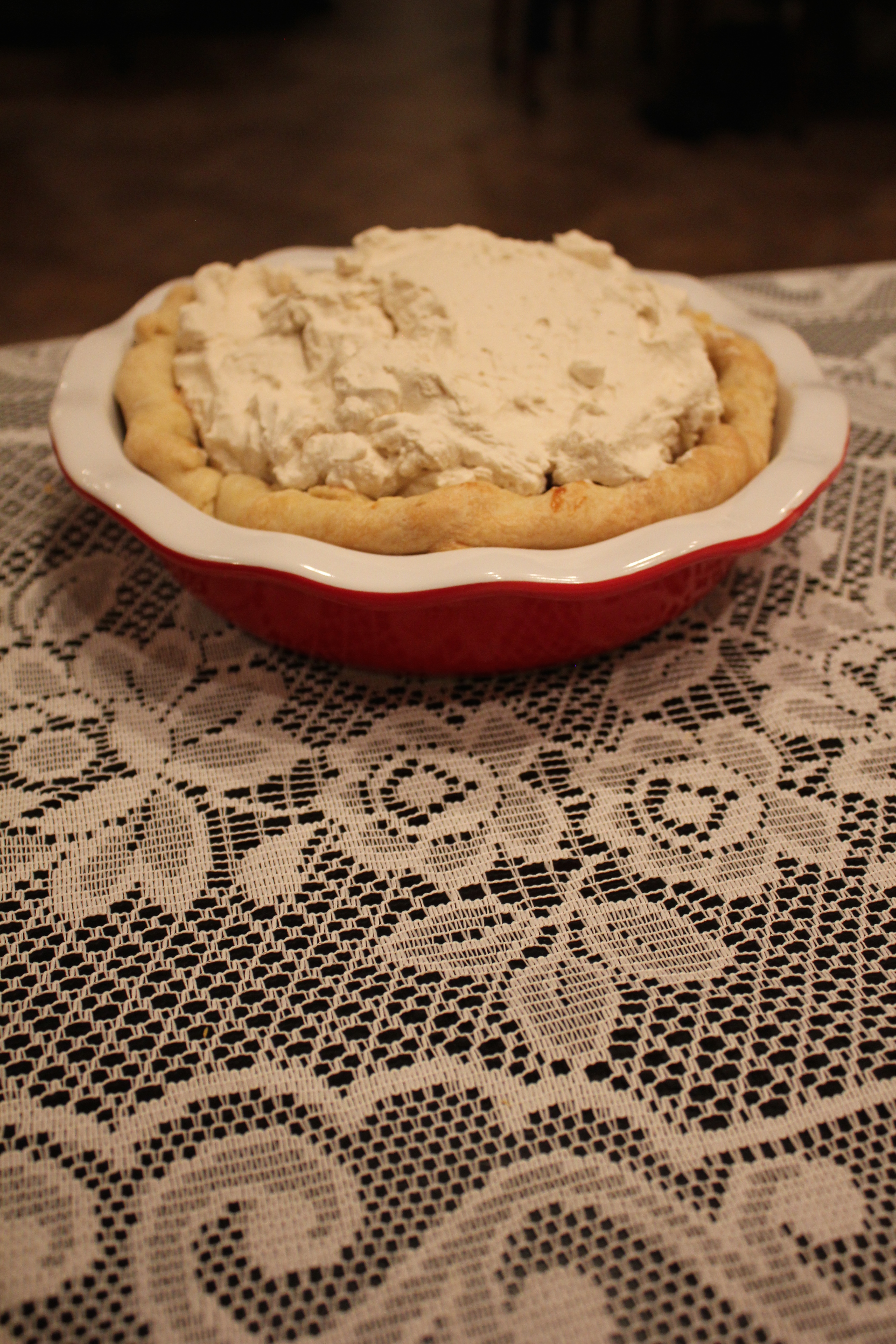 The filling is refrigerated in the already cold pie shell before a topping gets added. Here I am with an expression that says, “lol now I’ve seen it all”.