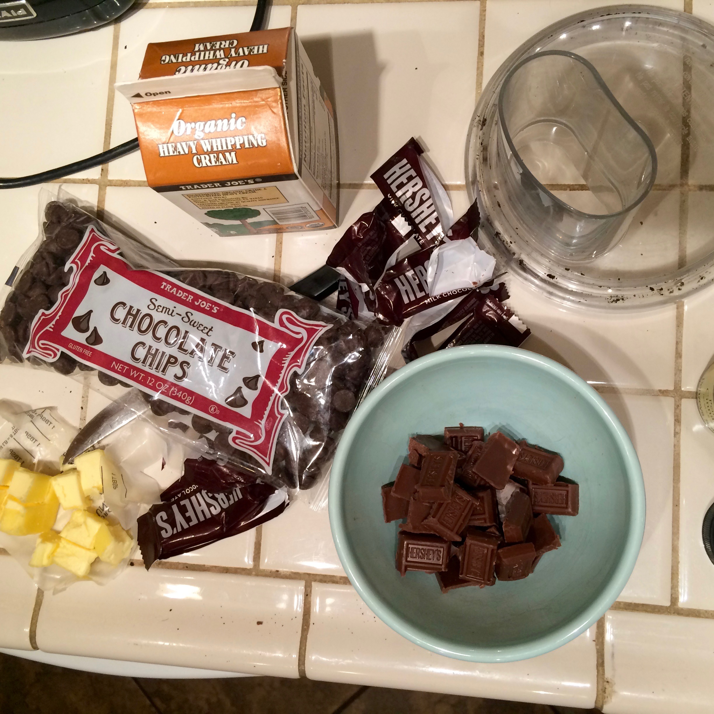 The first step in the making of this crust involves pulsing chocolate and walnuts and sugar in a food processor. I had overlooked this small detail while packing but guess what it TOTALLY worked out because my food processor has been functional but essentially broken all year. Levi did a Target run on Day 2 of our vacation that included: a new food processor.