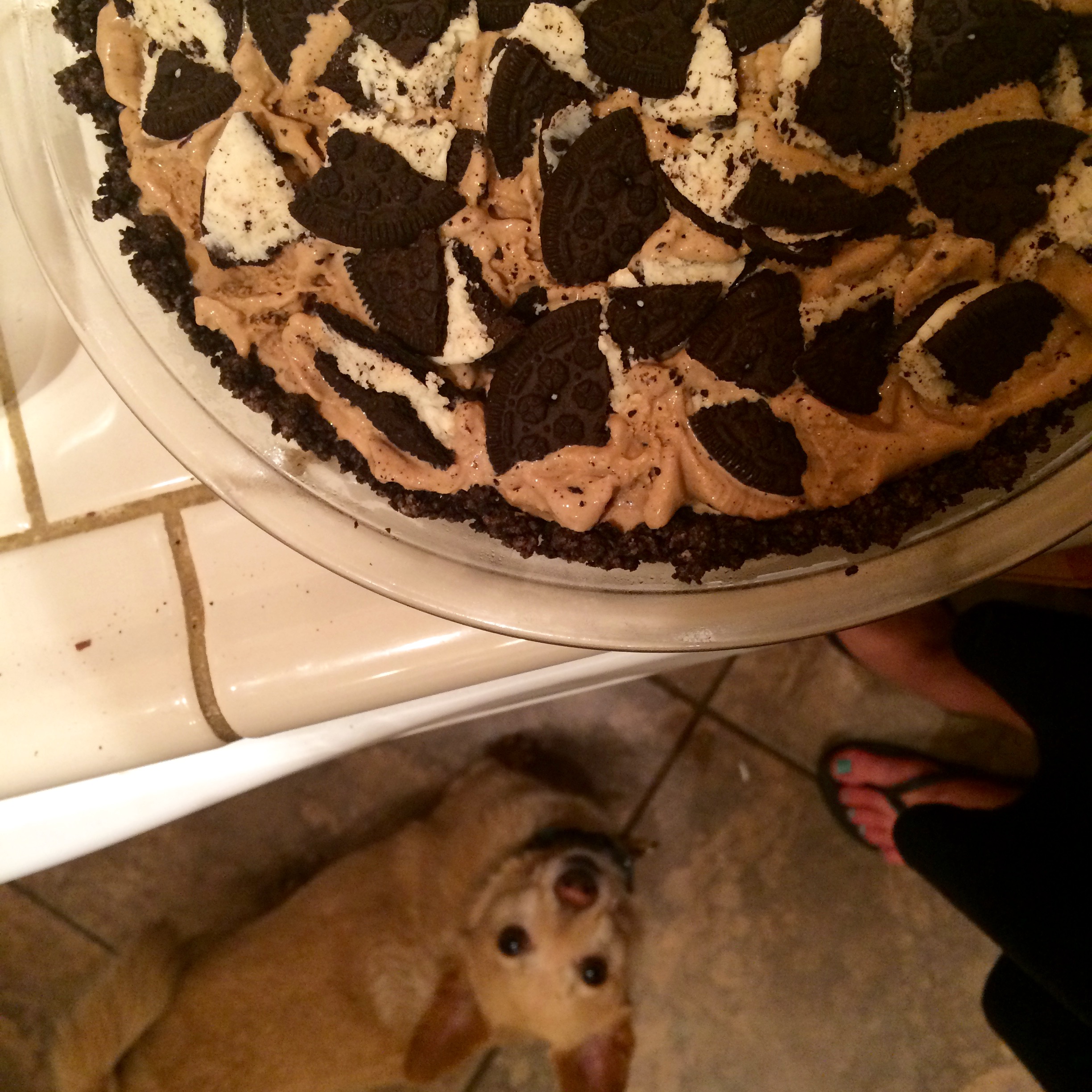 “Hi neighbors! Uhhhh…..I made this frozen coffee toffee pie and there’s no way we’re going to eat it all, do you guys want to try some? None of you are allergic to nuts, right?”