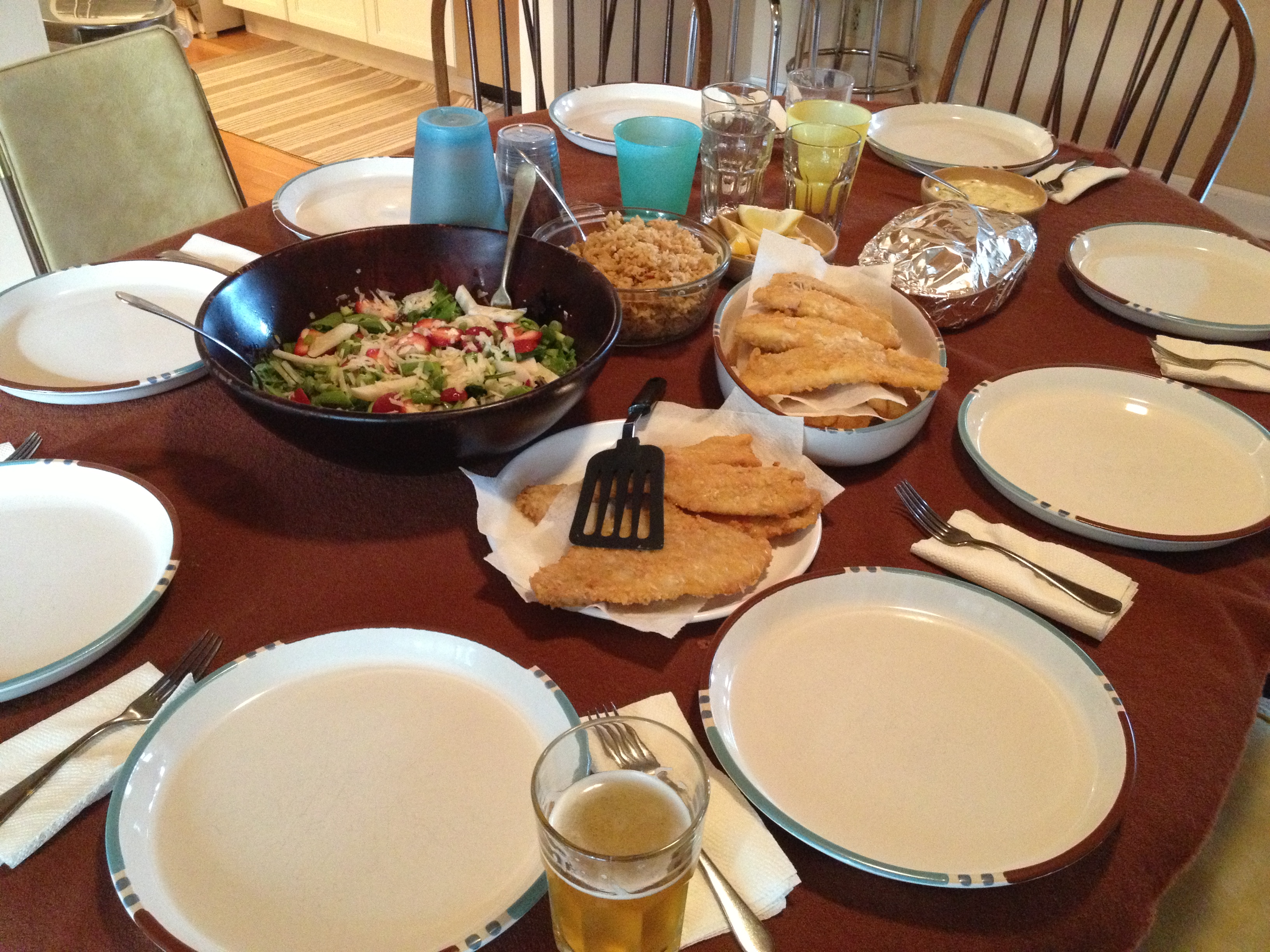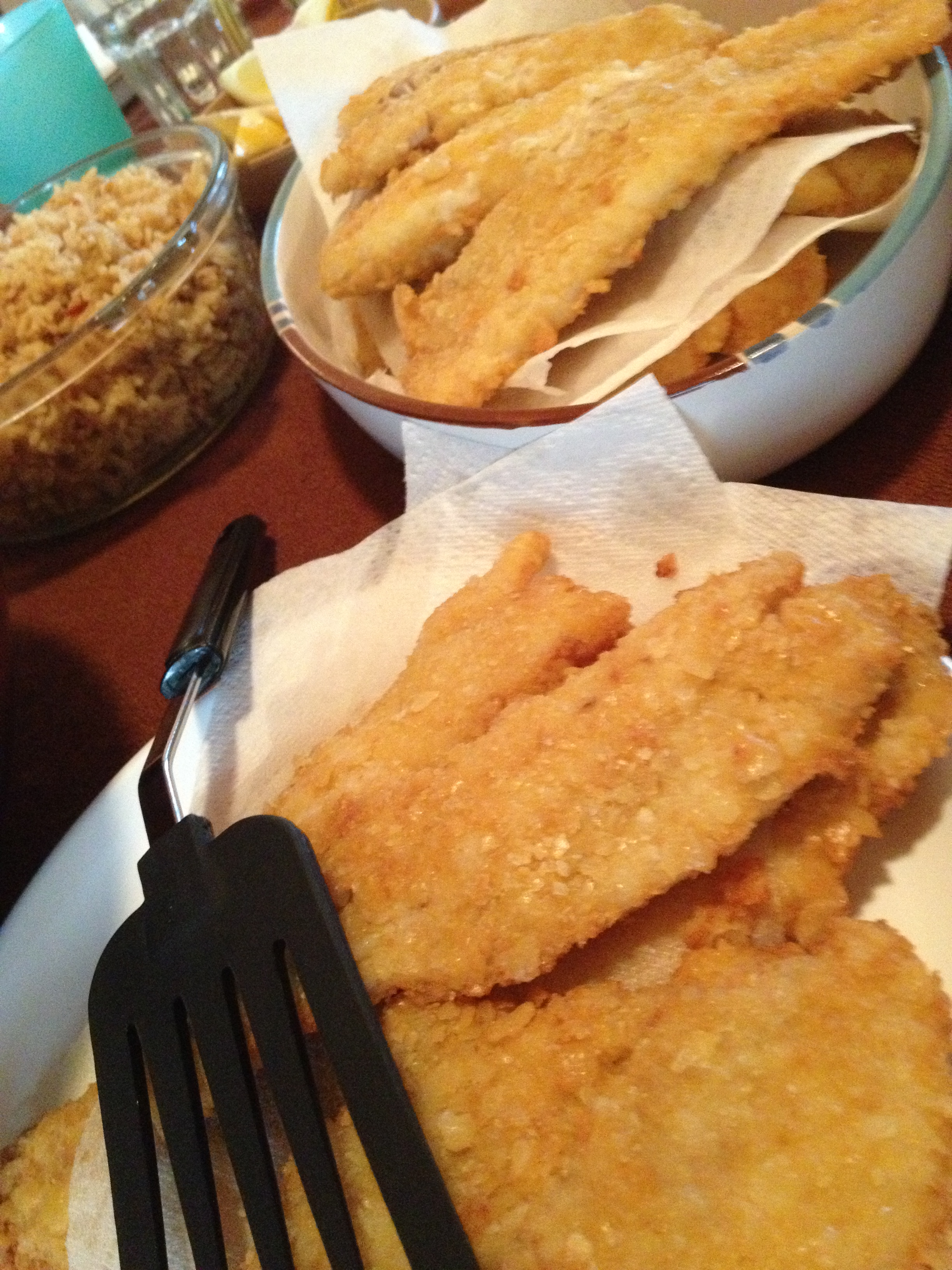 Grandmom leads fish dinner preparations, breading the filets perfectly. My mouth is literally watering just looking at these pictures.