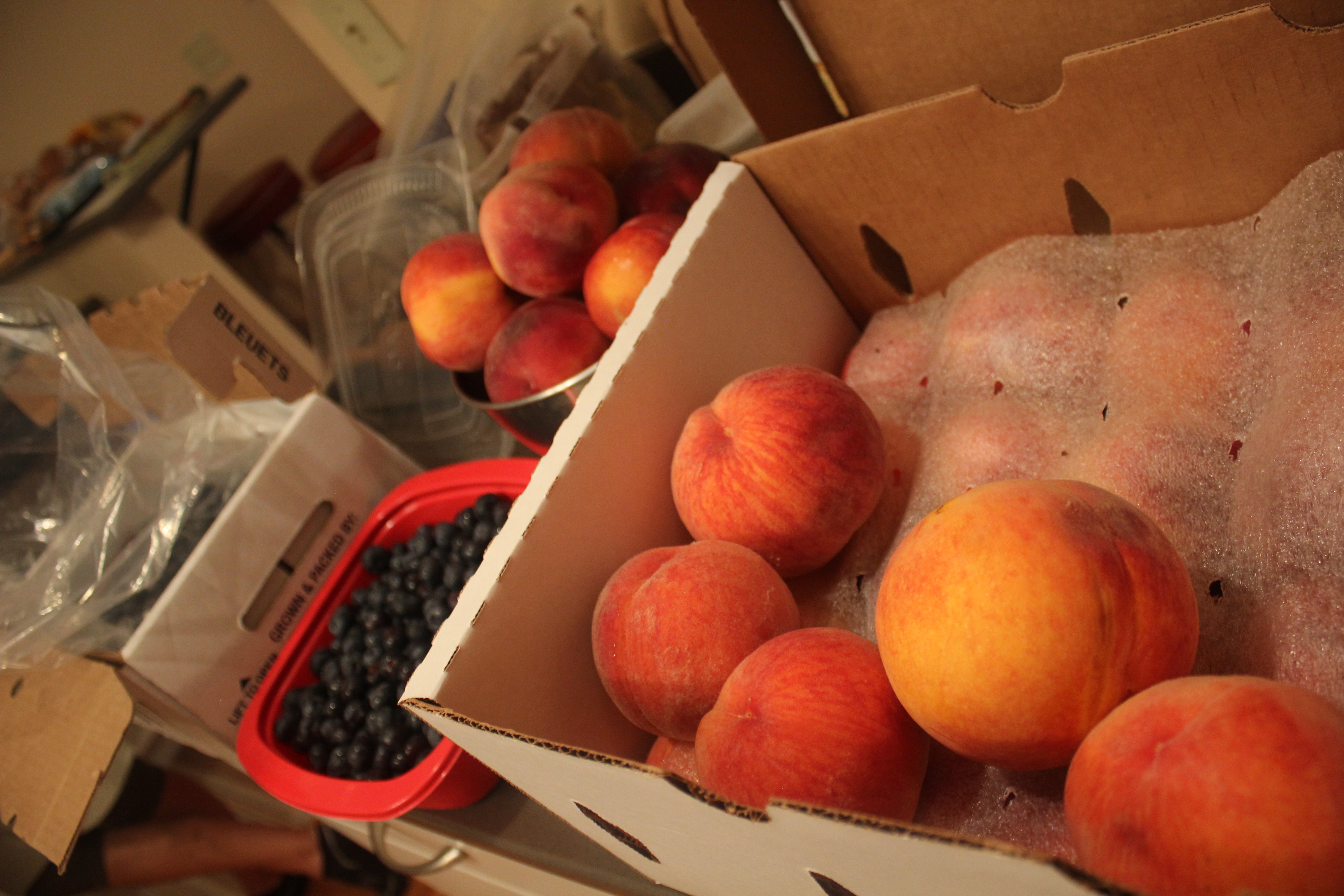 Jury’s still out on how useful that was, as I’m pretty handy with a paring knife, and I think I could have peeled the peaches in far less time than it took to boil the water, try to determine when the peaches were actually finished (although Ken does give very good, clear directions on the process) and then scrape off the remaining skin as not all of it really came off nicely. Either way, it was fun to try a different method-and I can definitely see how, when executed properly, blanching could cut back on wasting delicious bits of fruit that might be cut off with a knife.