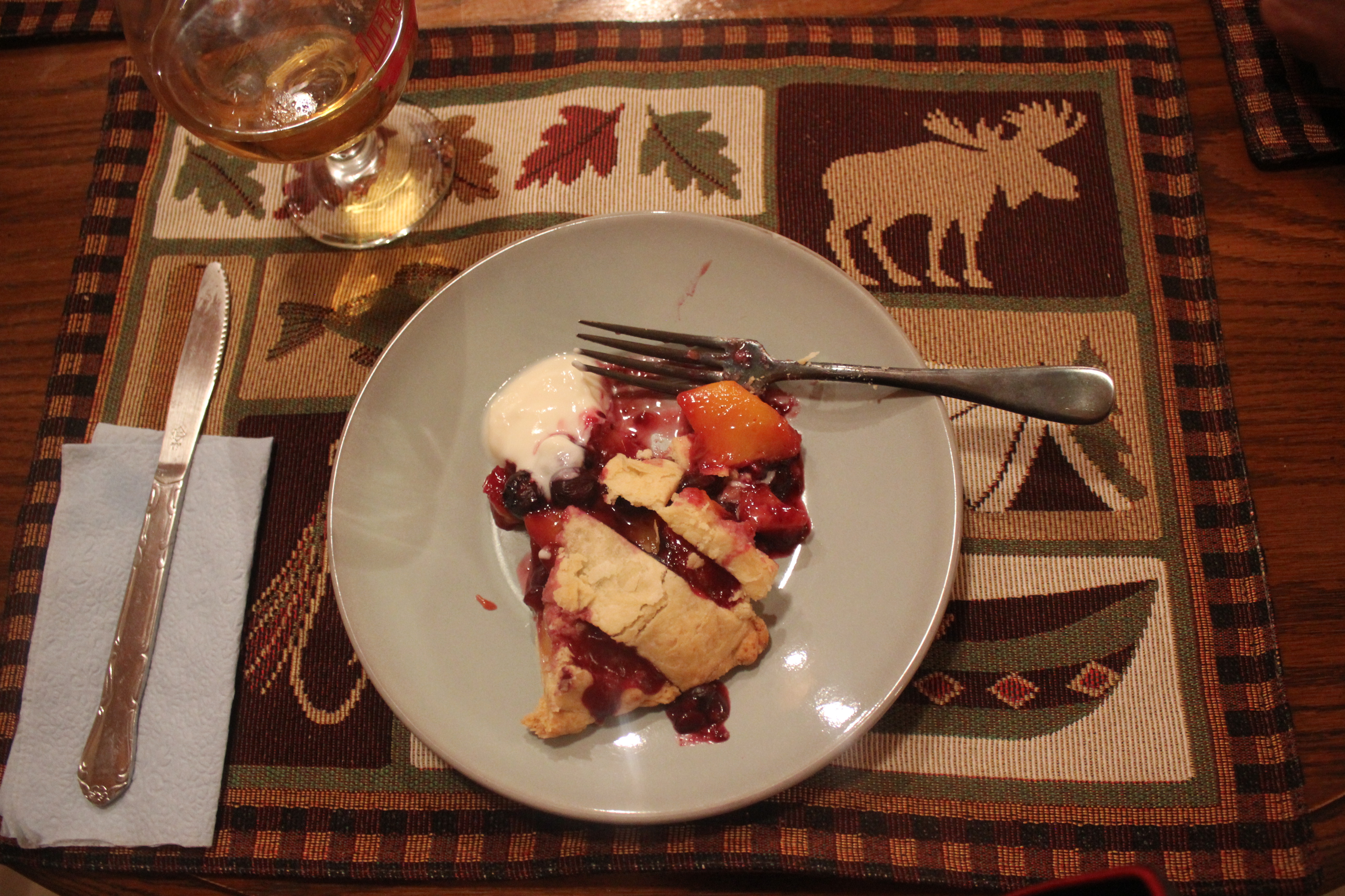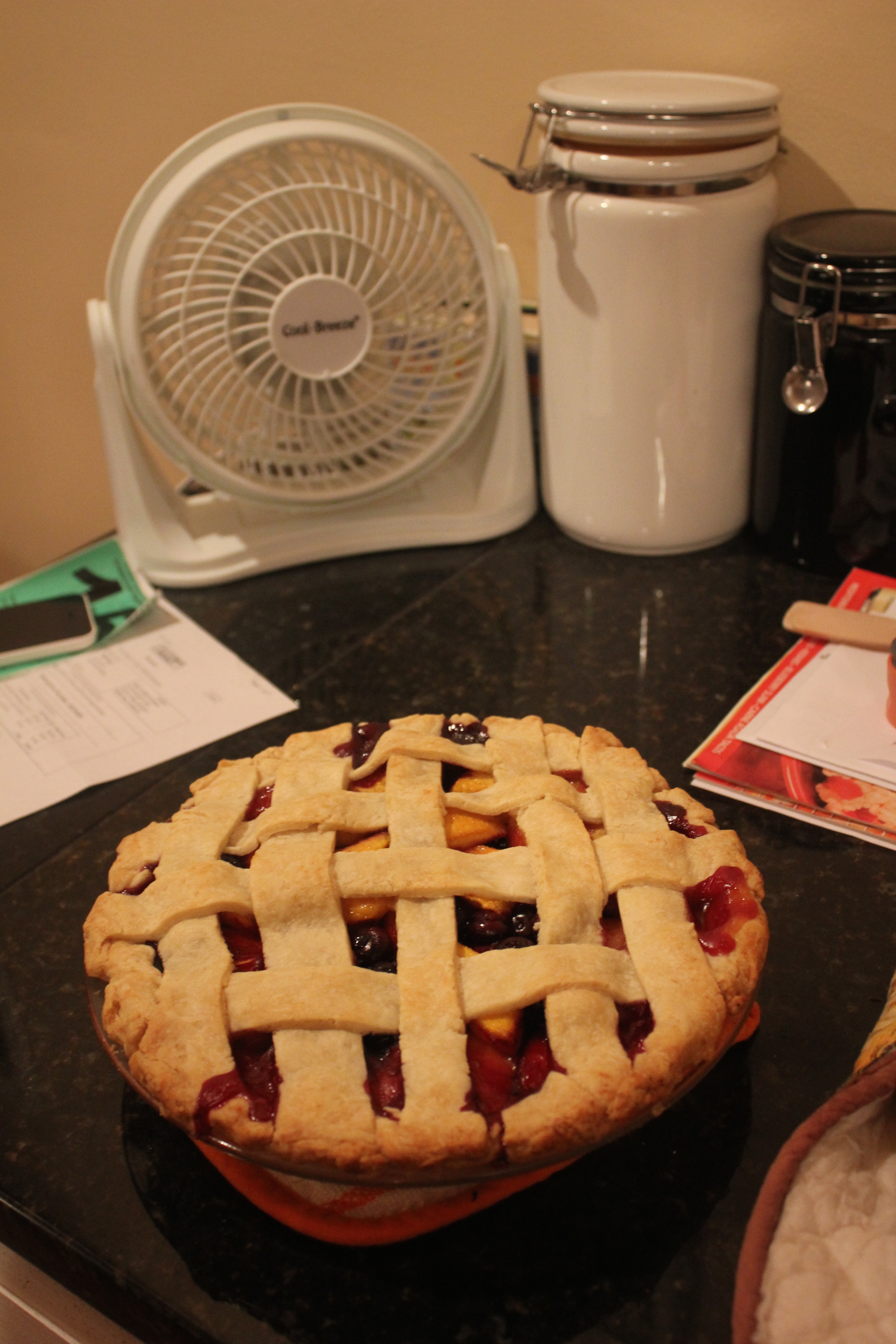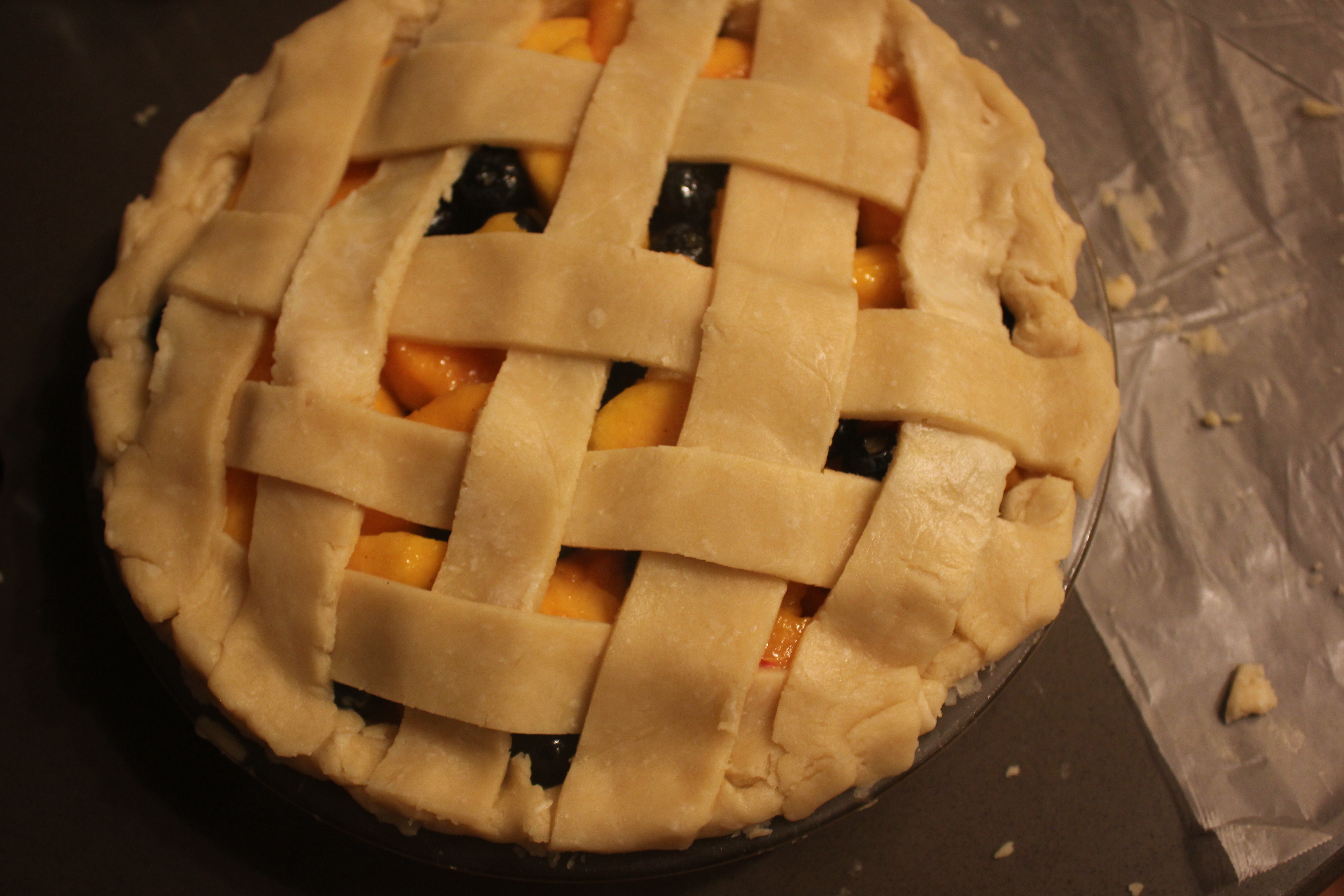 Although I have already baked my way through so many of the fruit pies in the Pie cookbook, I was luckily able to find and prepare this lovely new specimen for Matt’s birthday festivities: Deep-Dish Blackberry-Peach Double-Crust Pie.