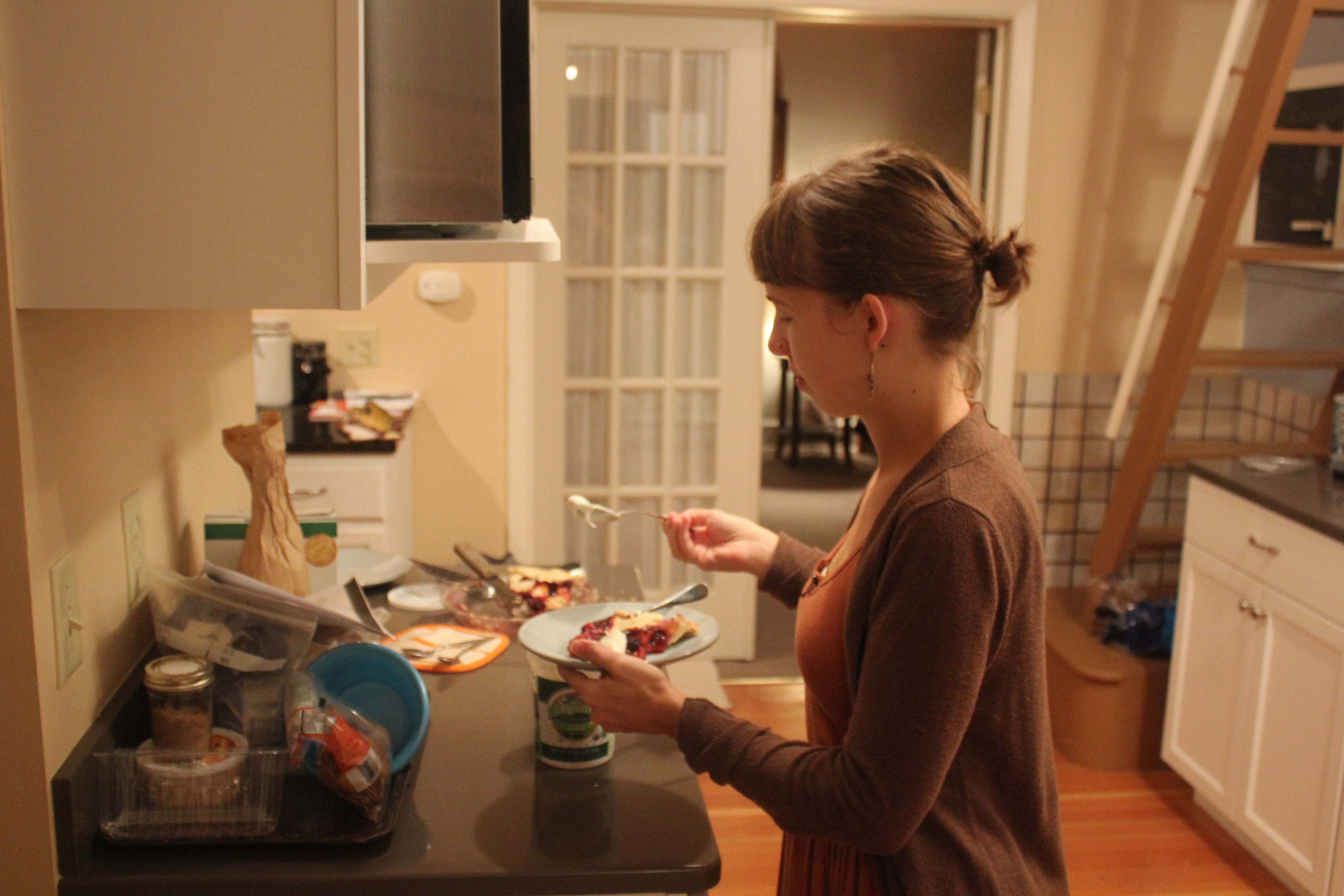 Another of the fun new tricks: freshly grated nutmeg. I’m rather ashamed to say that this was new to me. I apologize for dashing your visions of me happily grating whole nutmeg tendrils into every pie filling that had ever called for nutmeg. I usually just shake it out of a jar. But Grandmom had a whole nutmeg and a cute teeny nutmeg grater at her house and once I saw this, I knew it was meant to be. Fresh nutmeg, you smell so good.