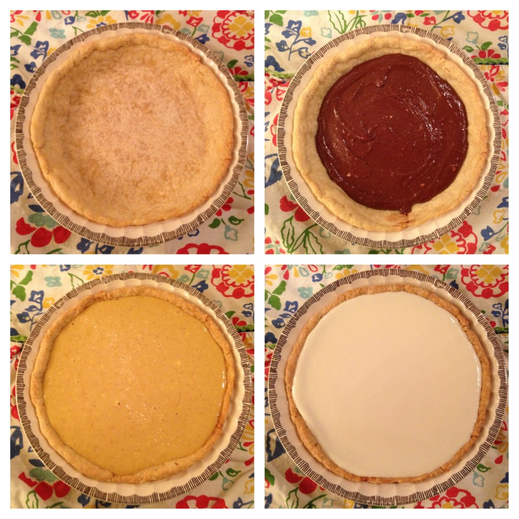 I was working on a Triple-Layer Pumpkin-Chocolate Pie, a pie which, in my own words, “I’m really excited to make because I’ve been eyeing this recipe forever and never actually made!” Well, look. I hate to say this, but sometimes pies begin to blur together in my mind. I’d checked the Pie Gallery page of this website multiple times, saw no hint of the Triple-Layer, and thought I was in the clear. But then, the aforementioned déjà vu hit too strongly when I was photographing the pie with its top sour cream layer and I did a more careful search through old blog posts. Come to find, the Thanksgiving pies of 2013 never made it to the gallery!! I laughed out loud when I saw the image below…