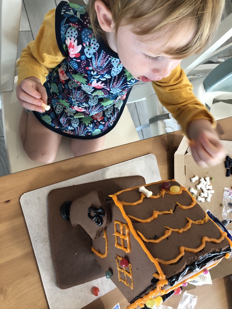 In between steps of pie-making, I assisted Pippa in creating a chocolatey treat of her own. (Thanks Trader Joe’s.)