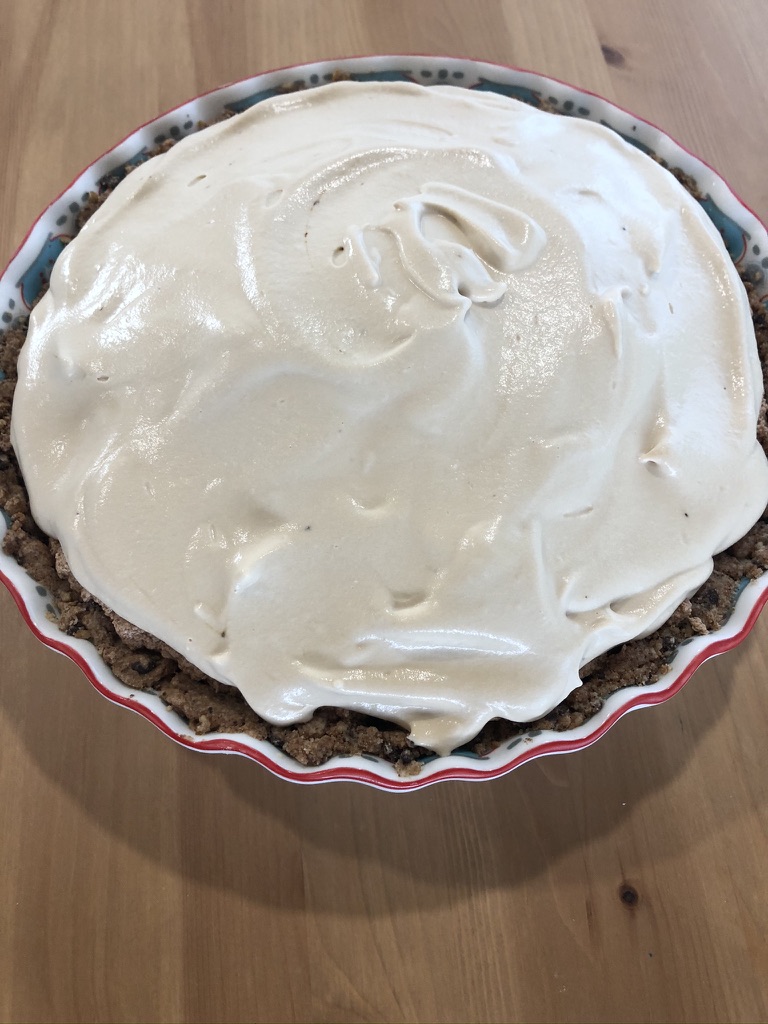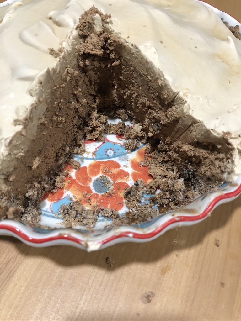 “Hi neighbors! Uhhhh…..I made this frozen coffee toffee pie and there’s no way we’re going to eat it all, do you guys want to try some? None of you are allergic to nuts, right?”